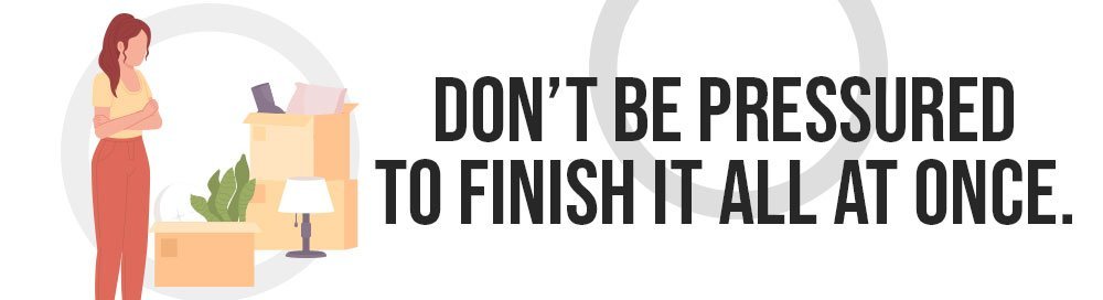 Aside from the fact that decluttering all in one go is just not realistic, it can be frustrating as well. Professional organizers see decluttering as a mindfulness practice, which means you don't want to bite off more than you can chew. Instead of saying you’ve got to “clear it all out” in one sitting, rephrase and say you’ll devote at least a few hours to sort it out, and you’ll feel the difference. Besides, you won’t even be able to see all of your clutter on the first pass. After letting go of the obvious unwanted stuff on your first round, there will be a round two for things you haven’t seen before or you haven’t decided yet.